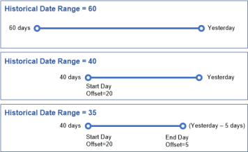 - Start date offset—This is number of days from the 60-day maximum, used to define the start of the range.