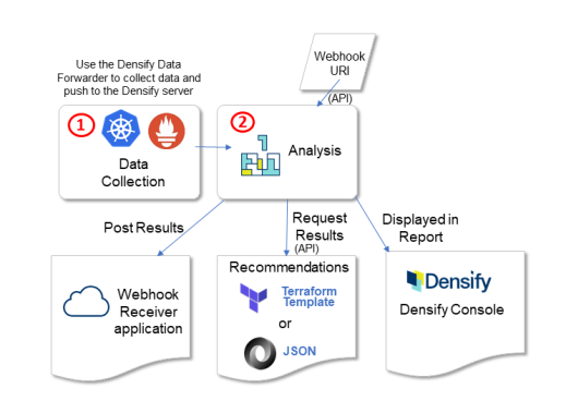 You can add a webhook definition to an existing Kubernetes container analysis. The analysis will push the optimized results to the specified webhook URI. See Analysis: Webhook for details on managing webhooks.Example: Adding a Webhook Definition to an Existing Kubernetes Container Analysis