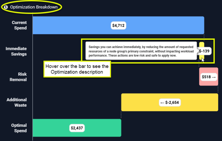 Optimal Cost | This is what the infrastructure should cost to run the selected workloads. Calculated as (Total Estimated Waste). |