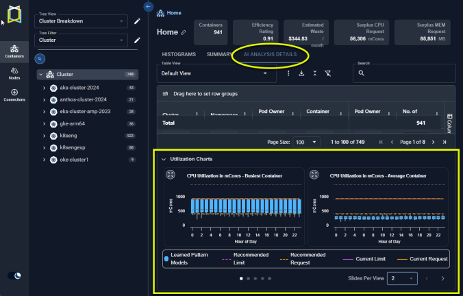 Figure: Locating theAI Analysis DetailsTab Charts