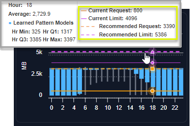 ML Model | The data is aggregated hourly for the last day (yesterday) and displayed using quartile data. The timezone of the data is server on which Densify is hosted. |