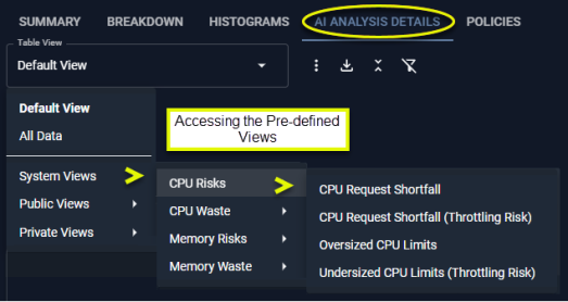 Figure: Accessing the System Views on theAI Analysis DetailsTab
