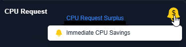 - Savings Indicators—Another indicator is displayed on the chart if resource allocations can be adjusted to save money. Again, you can click the message to see the corresponding detailed view on the AI Analysis Details tab.
