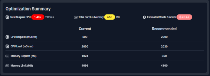 This card highlights your current settings and Densify’s recommended settings, based on utilization.