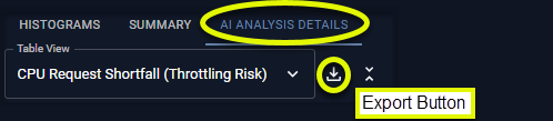 - Export—Export the selected content to CSV or Excel format. If you are exporting a value with a hyperlink, the hyperlinked URL is not exported when using .CSV format