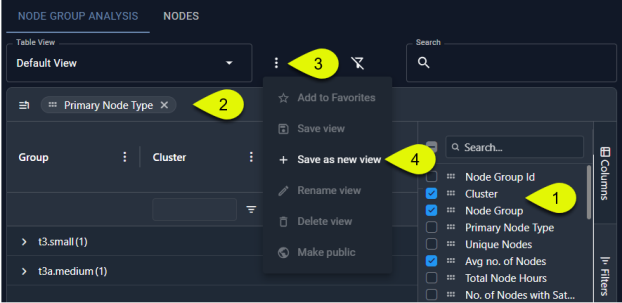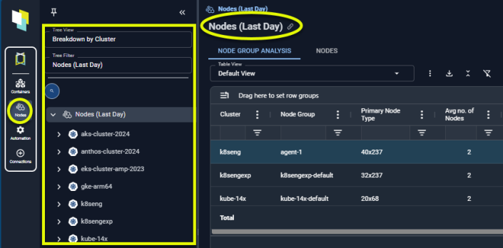 The default view is your container hierarchy i.e. Clusters > Node Groups > Individual Nodes. These views can be customized to better manage your data. See Creating Views from a Table.