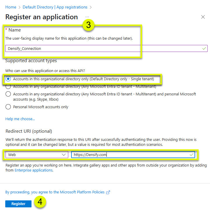 - Click Register to create and register the application. This is the service principal that Densify will use to collect data.