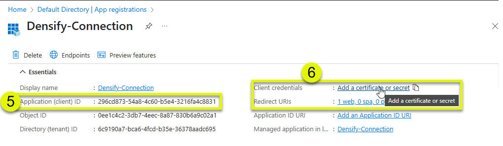 - Copy the Application ID (e.g. 7d16fbf8-1fc3-4e08-b48a-626). You need to copy this ID and save it to a location from which you can easily retrieve it. You will need the Application ID to create the Densify connection.