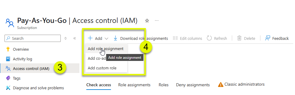 - Click Add > Add role assignment.