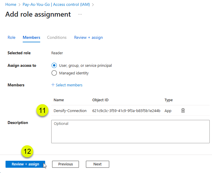 - Assign the custom role to the Densify service principal. See Assigning Access to Subscriptions.