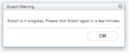 Due to the volume of data being aggregated and formatted, when exporting data from the Instance Optimization Details page, you may see the following message:Figure: Export Warning Message