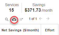 When viewing the all cloud pages (except AWS > RDS) you can configure the tabular data using the filters, grouping options and data controls and then export the data to a .CSV file. Click the download to .CSV icon (