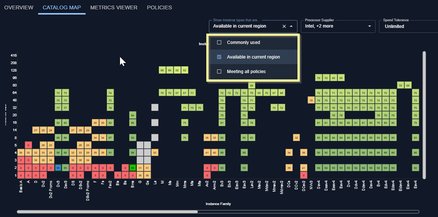 - Updated Azure Catalog Map—Azure Catalog Map has been updated to show all supported VM types and sizes. These are displayed on the map when “Commonly Used” is unselected.